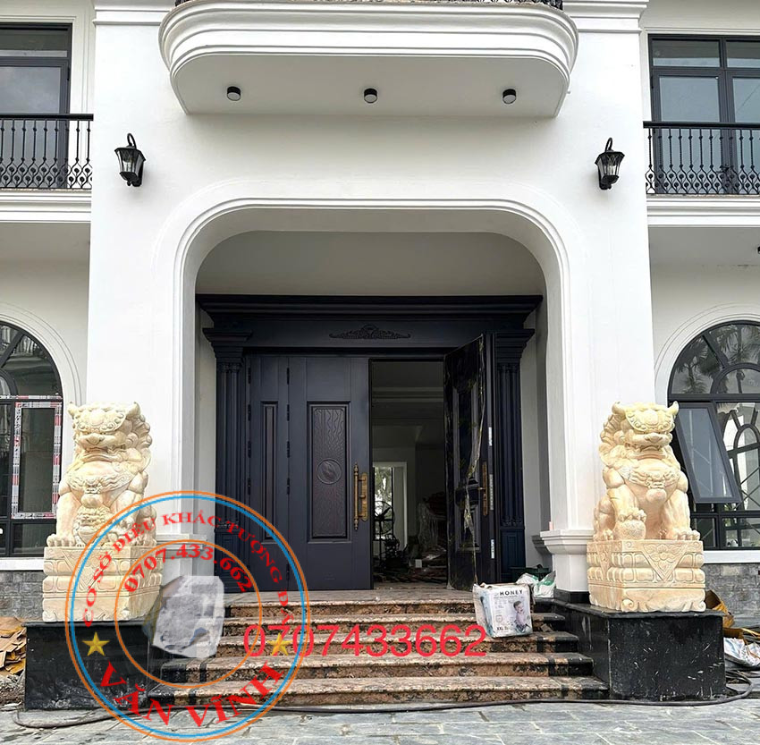 - Kích thước uy nghi: Với chiều cao 1,7 mét, cặp tượng có diện mạo rất bề thế, phù hợp để đặt tại cổng các công trình lớn như biệt thự, trụ sở doanh nghiệp, đình chùa hoặc khu lăng mộ.